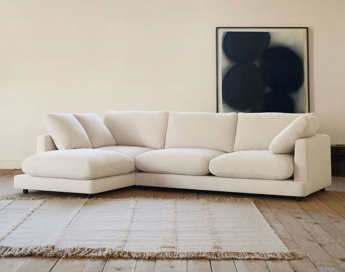 Sofá Gala 4 plazas con chaise longue izquierdo beige 300 cm. Kave Home.